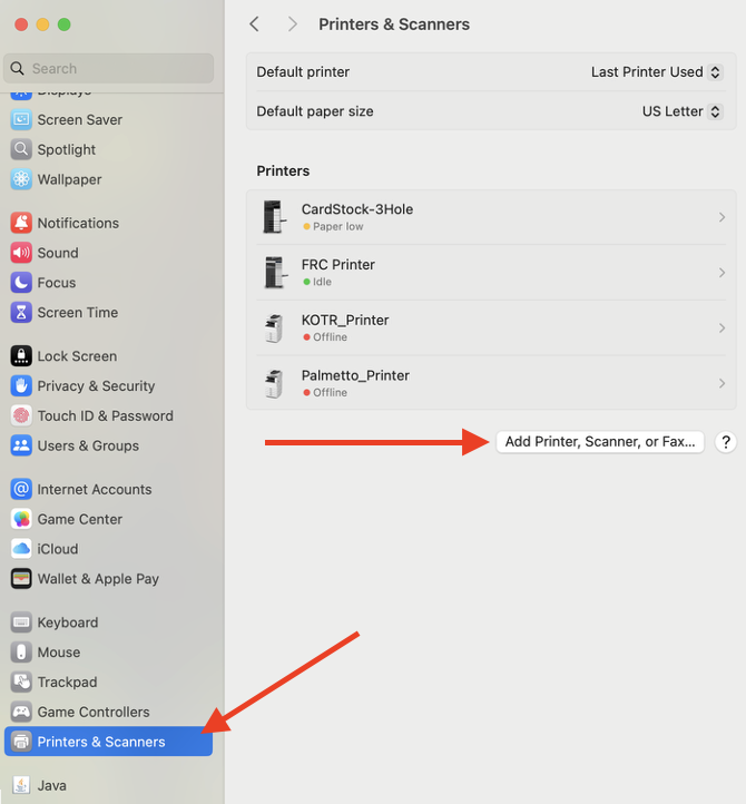 - Scroll down to “Printers & Scanners” & Click Add Printer, Scanner, or Fax
