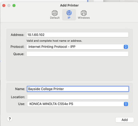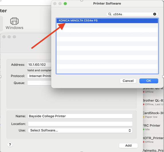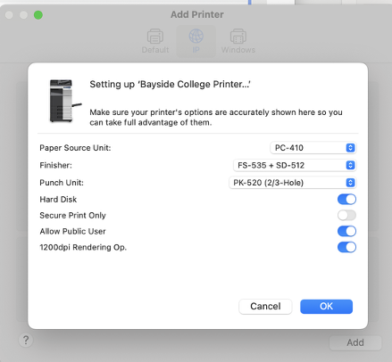 - Click “OK,” & Now the Bayside College Printer should be installed.