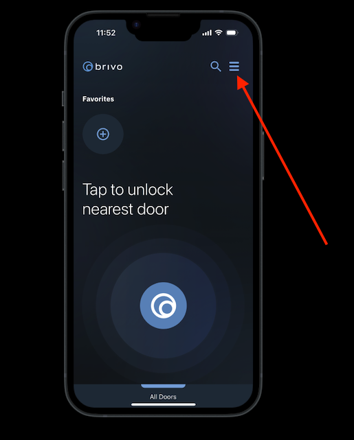 1. From your Brivo app, select the hamburger menu icon in the upper left corner.