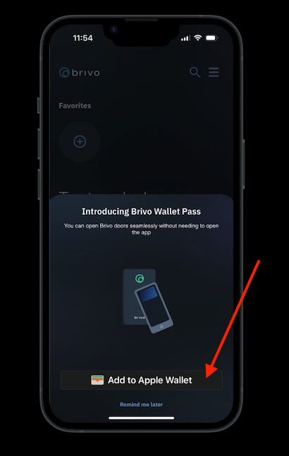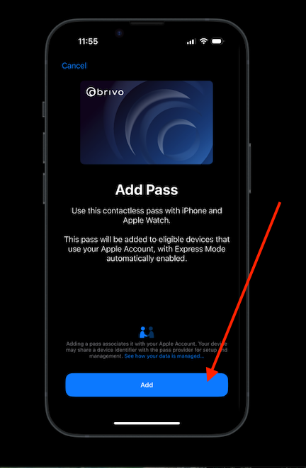 9. If the "Introducing Brivio Wallet Pass" dialog box appears, select "Add to Wallet".