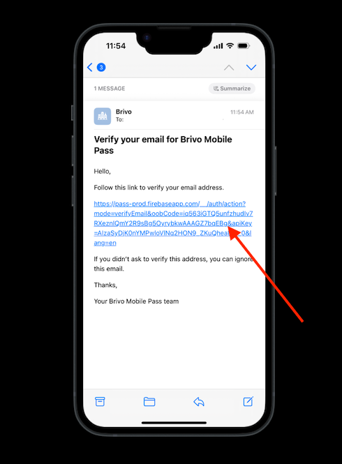 6. Once you click the link, you should receive the following confirmation message at which point you can navigate back to your Brivo app.