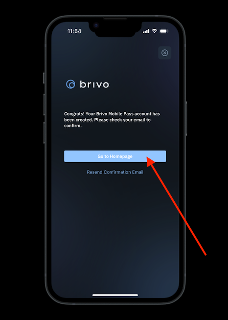 8. Back in the Brivo app, you can now click "Go to Homepage".